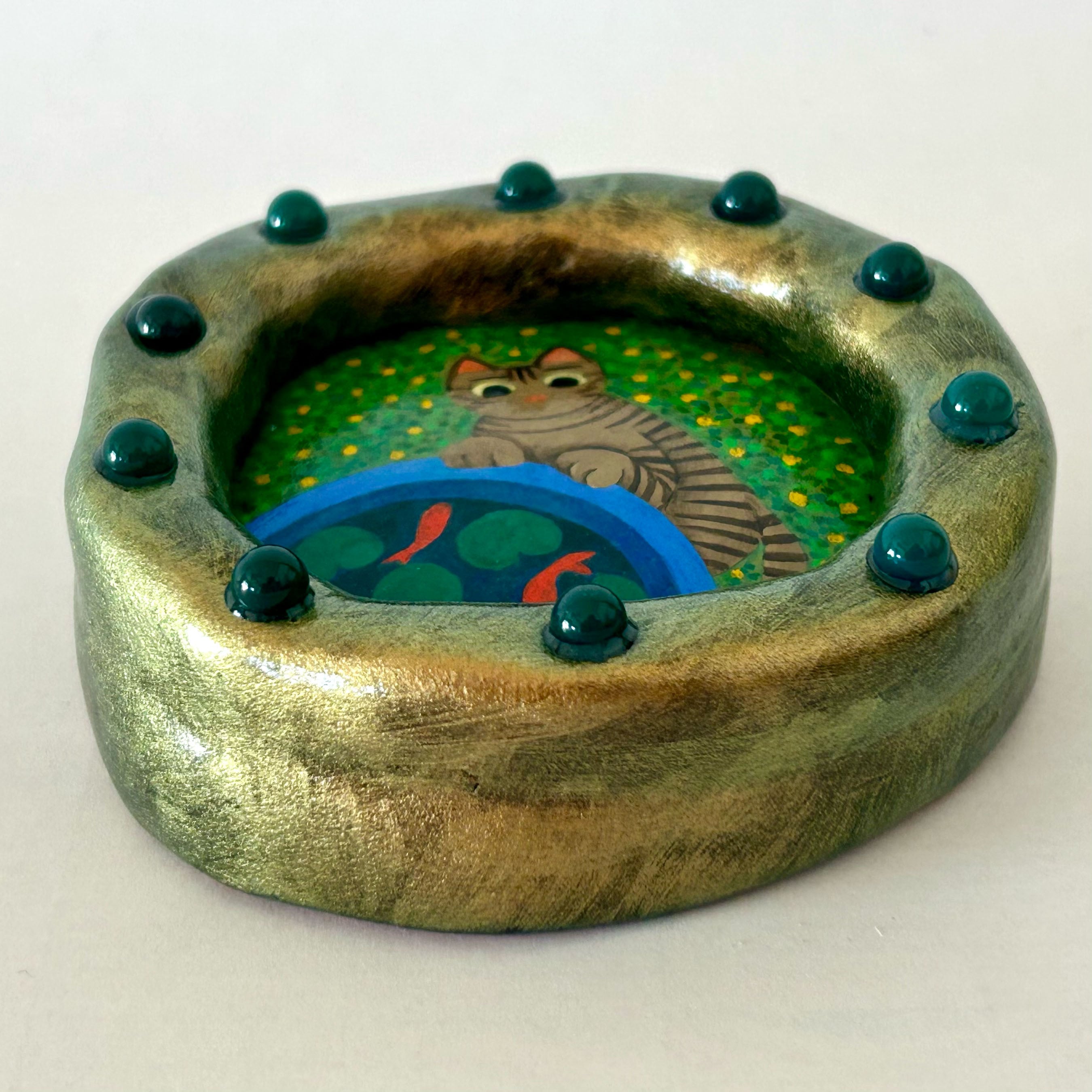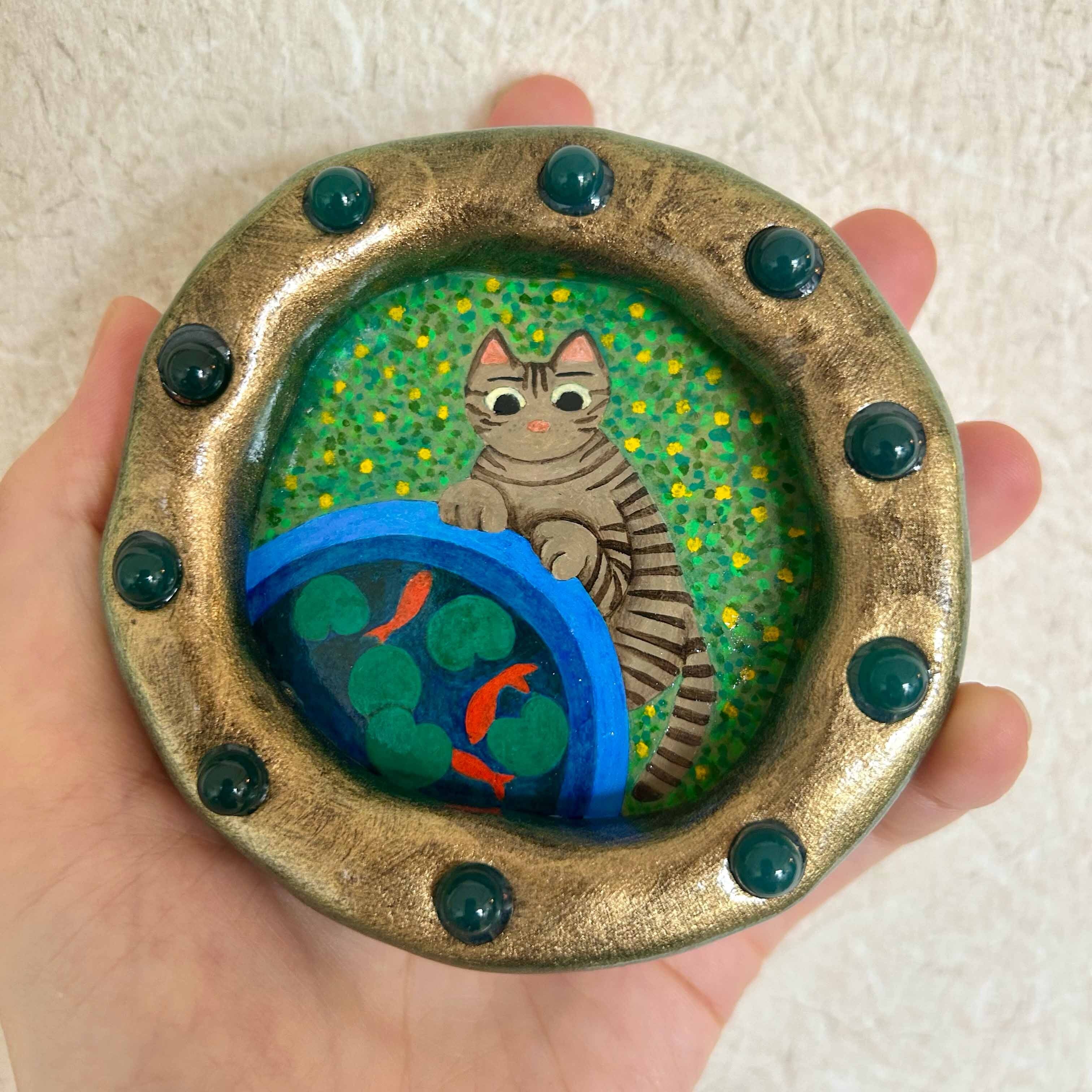 焼き上げた後に着彩し、ニスで仕上げております。裏にサインあり。