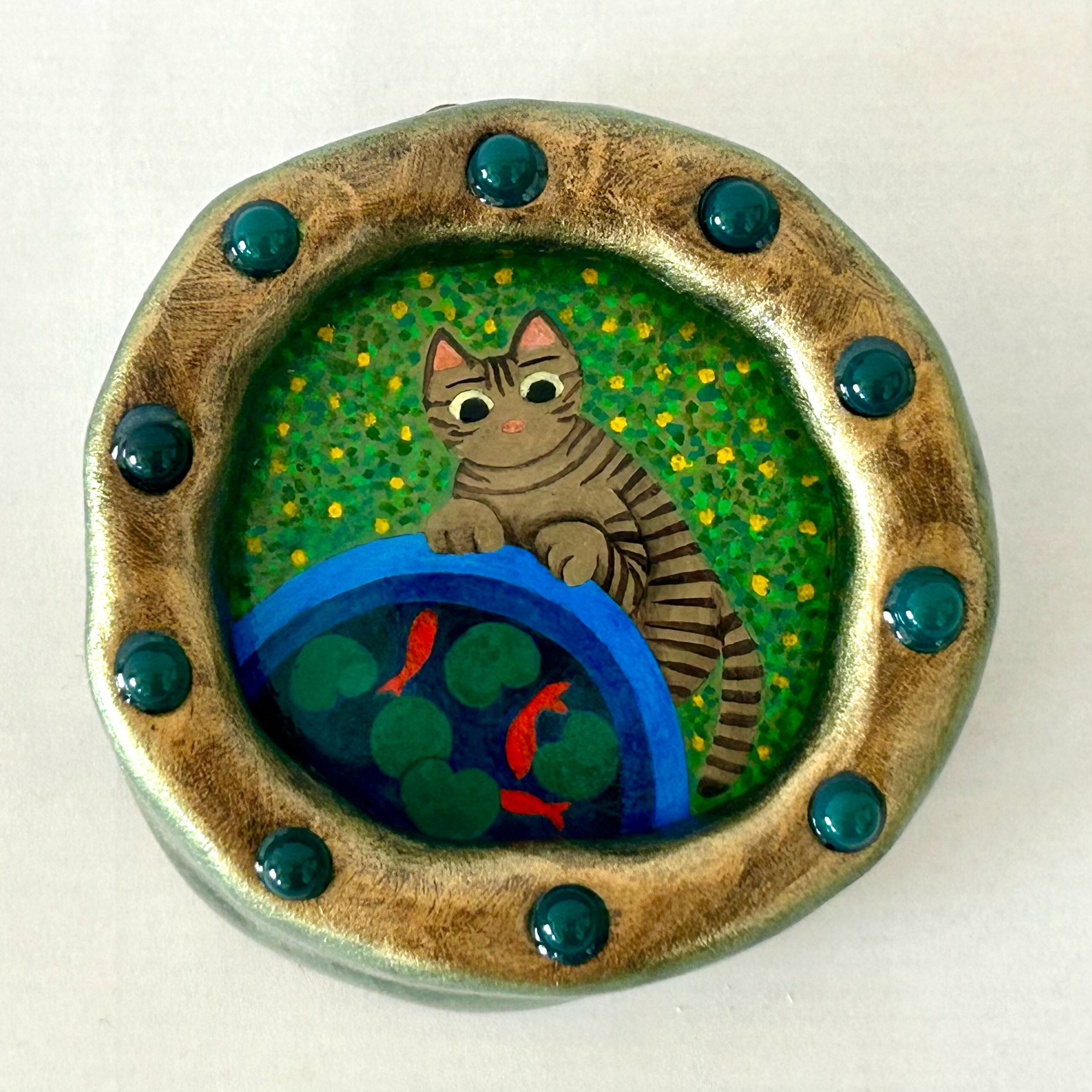 素材:アクリル絵具、天然石(グリーンオニキス)、陶芸粘土/ Acrylic on ceramic