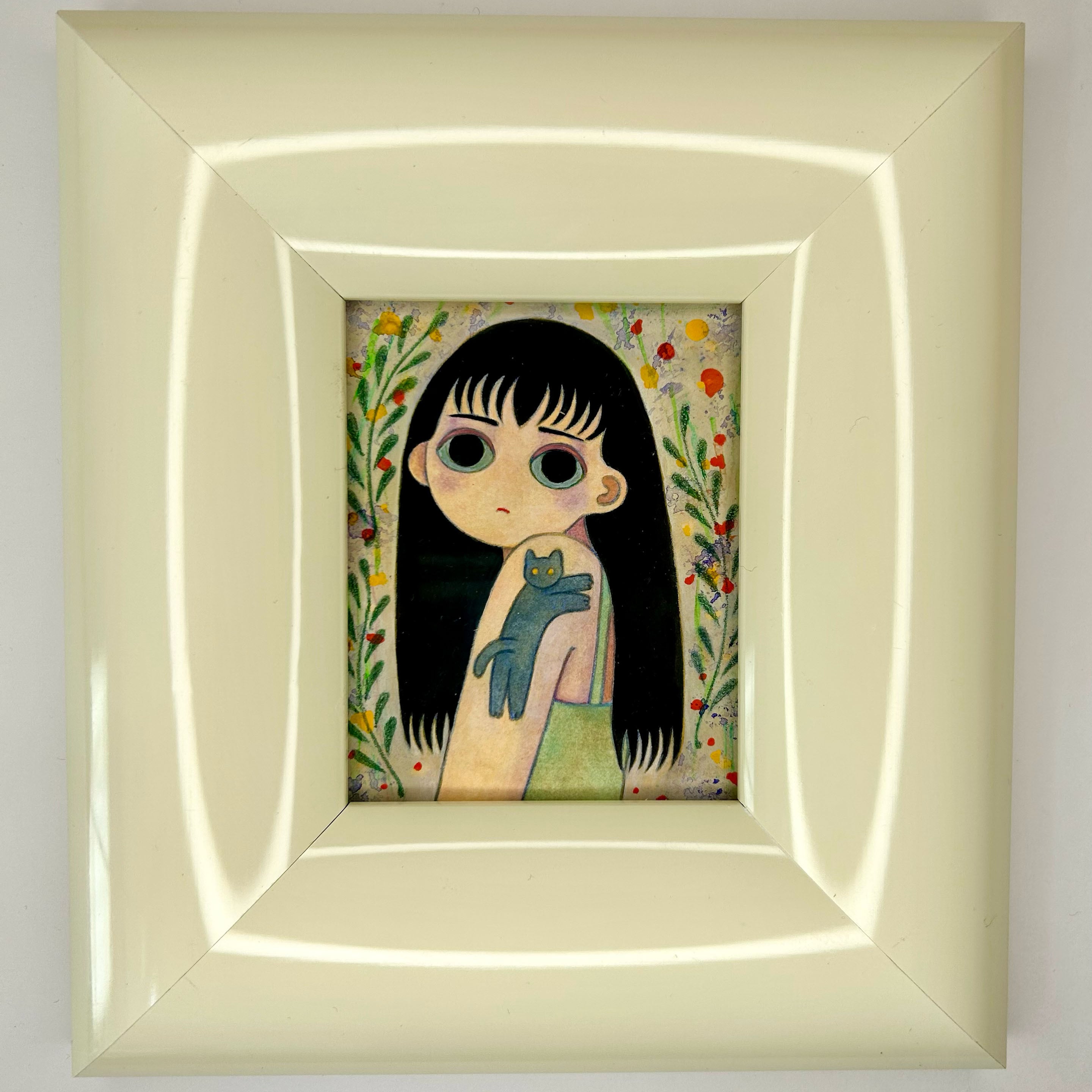 作品サイズ:84x102mm アクリル、色鉛筆、水彩紙 額装込み