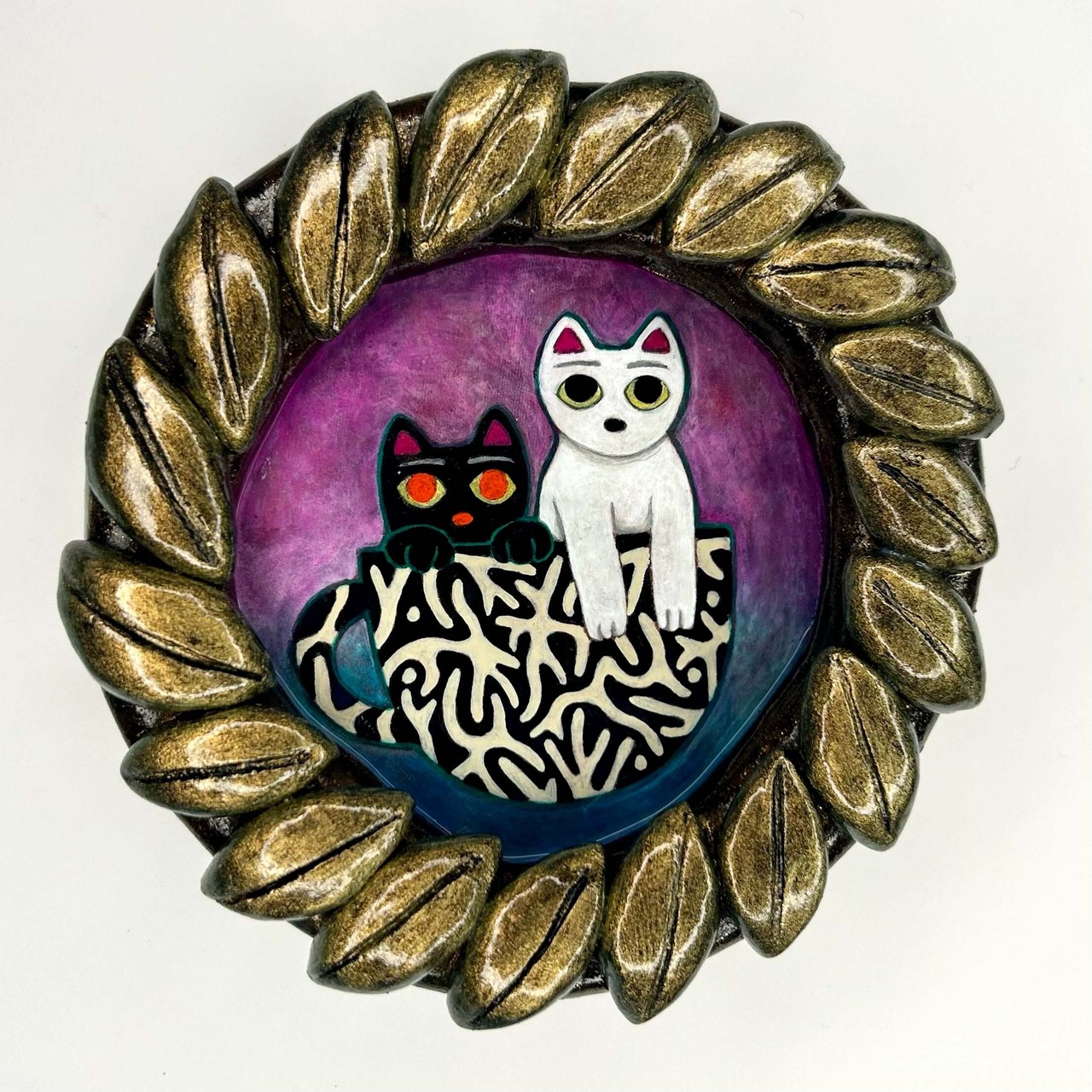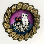 作品サイズ:104x103x28mm 陶芸粘土、アクリル絵具、金具