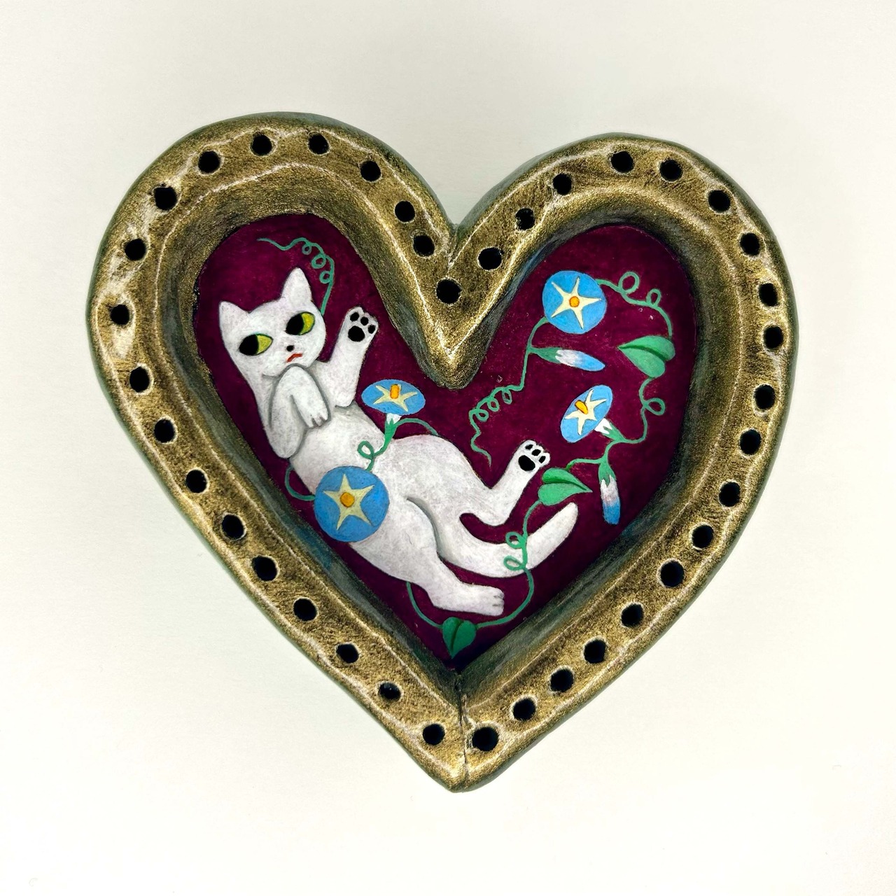 作品サイズ:90x96x19mm 陶芸粘土、アクリル絵具、金具